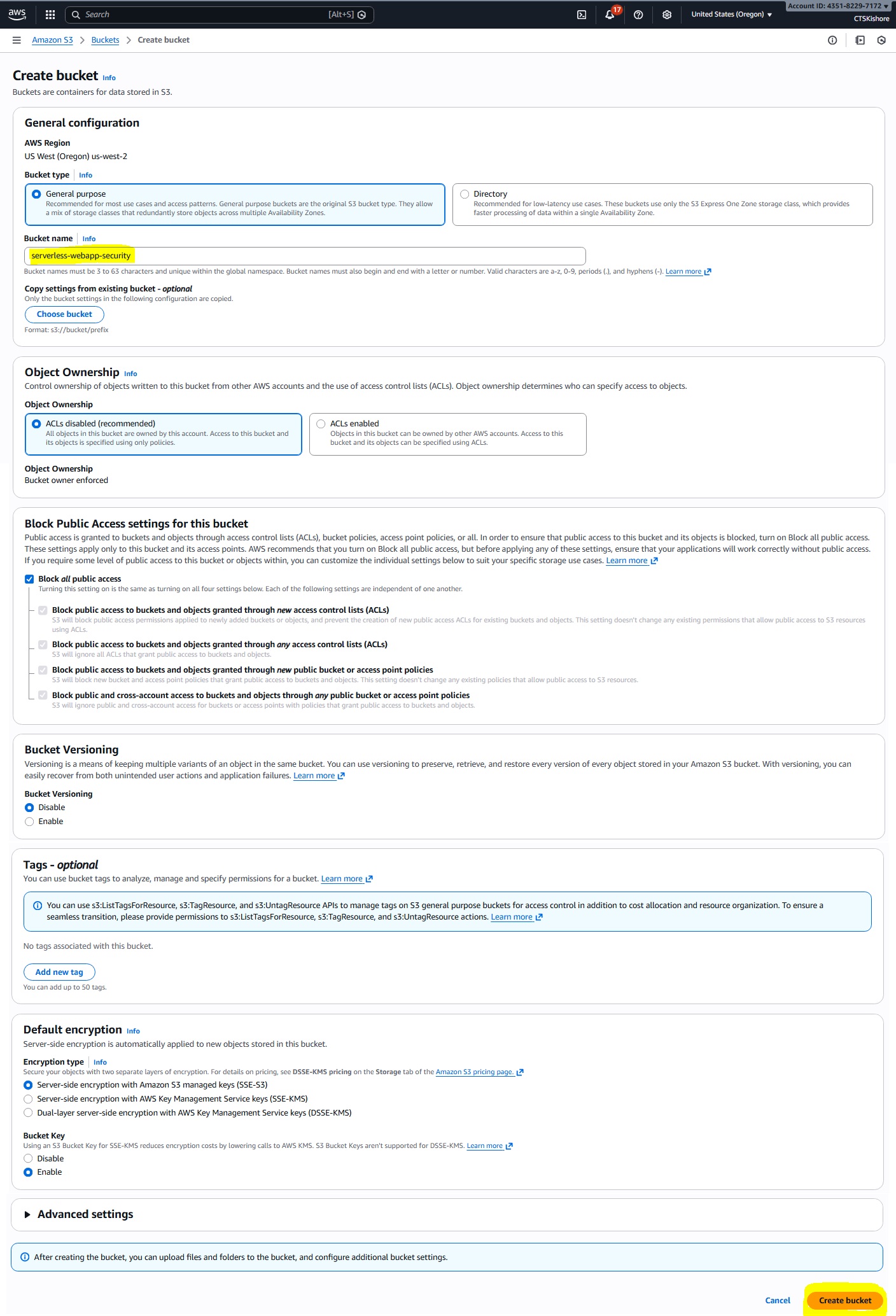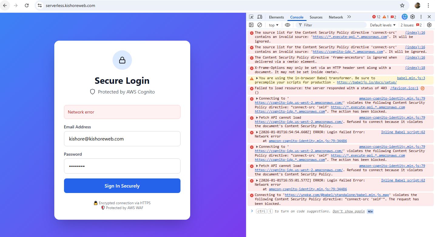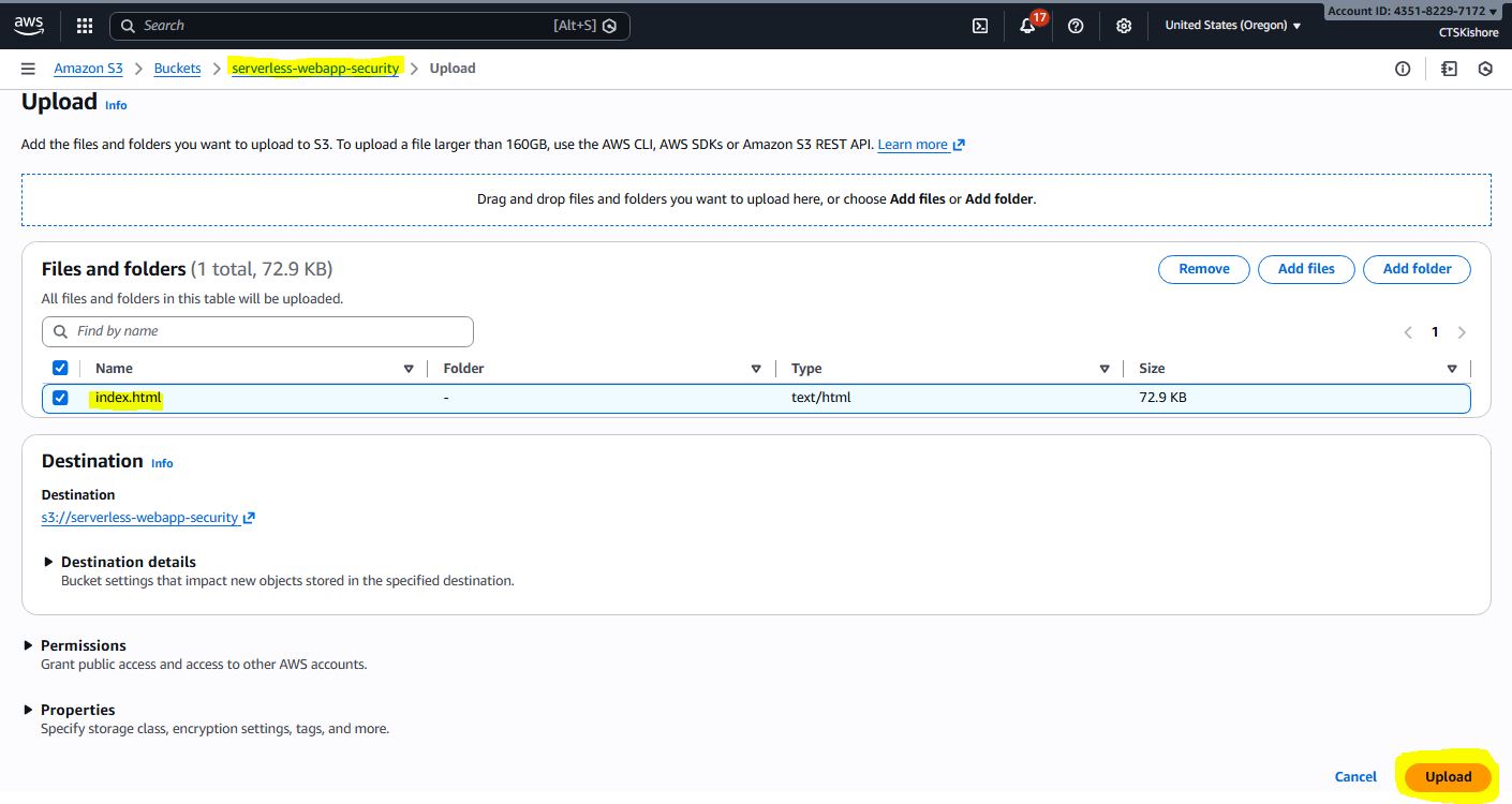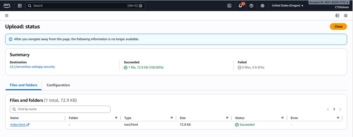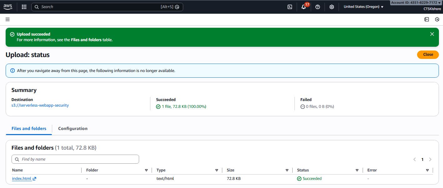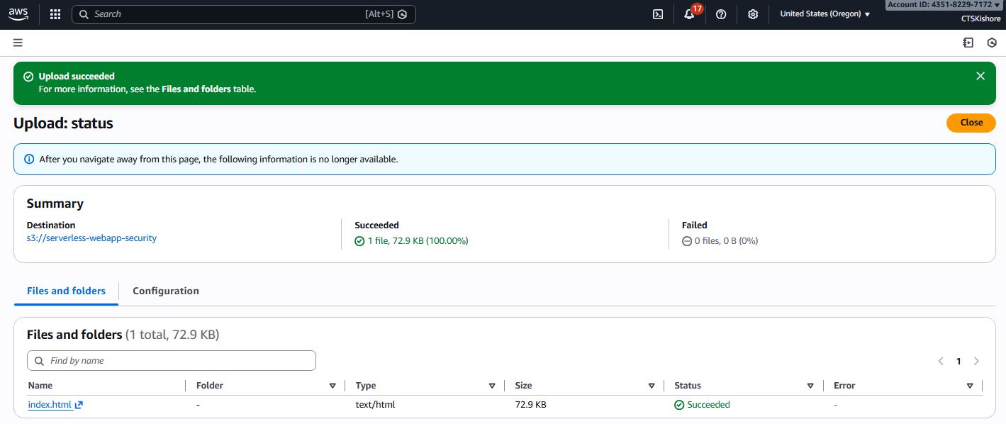 Serverless Webapp with Security Deployment Steps & Images