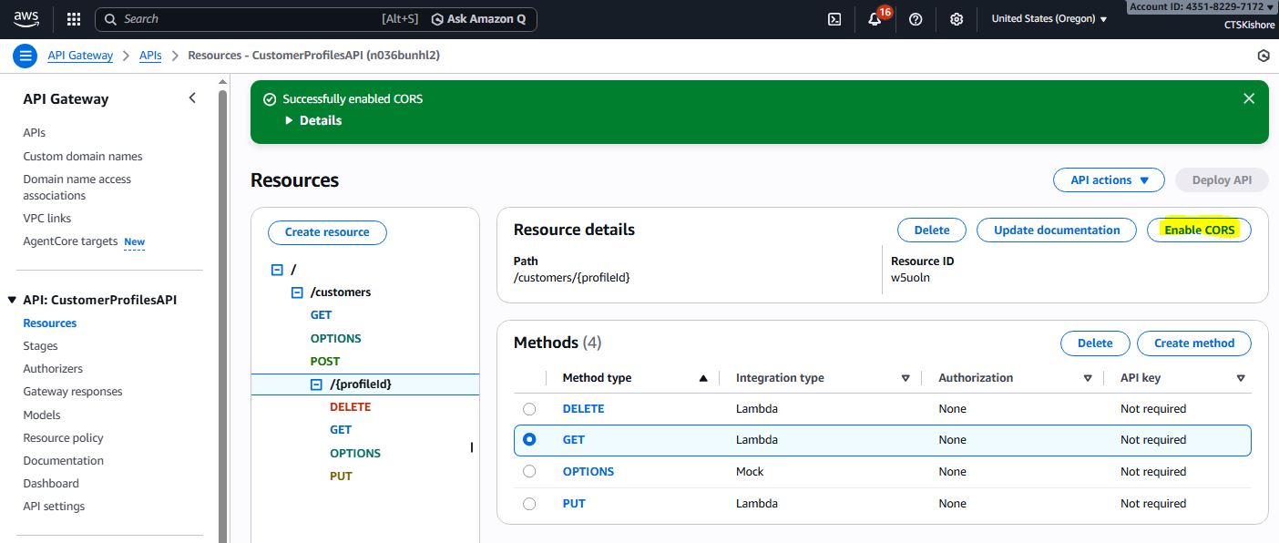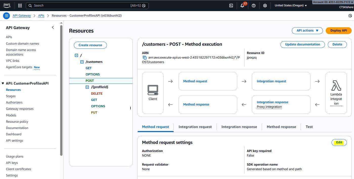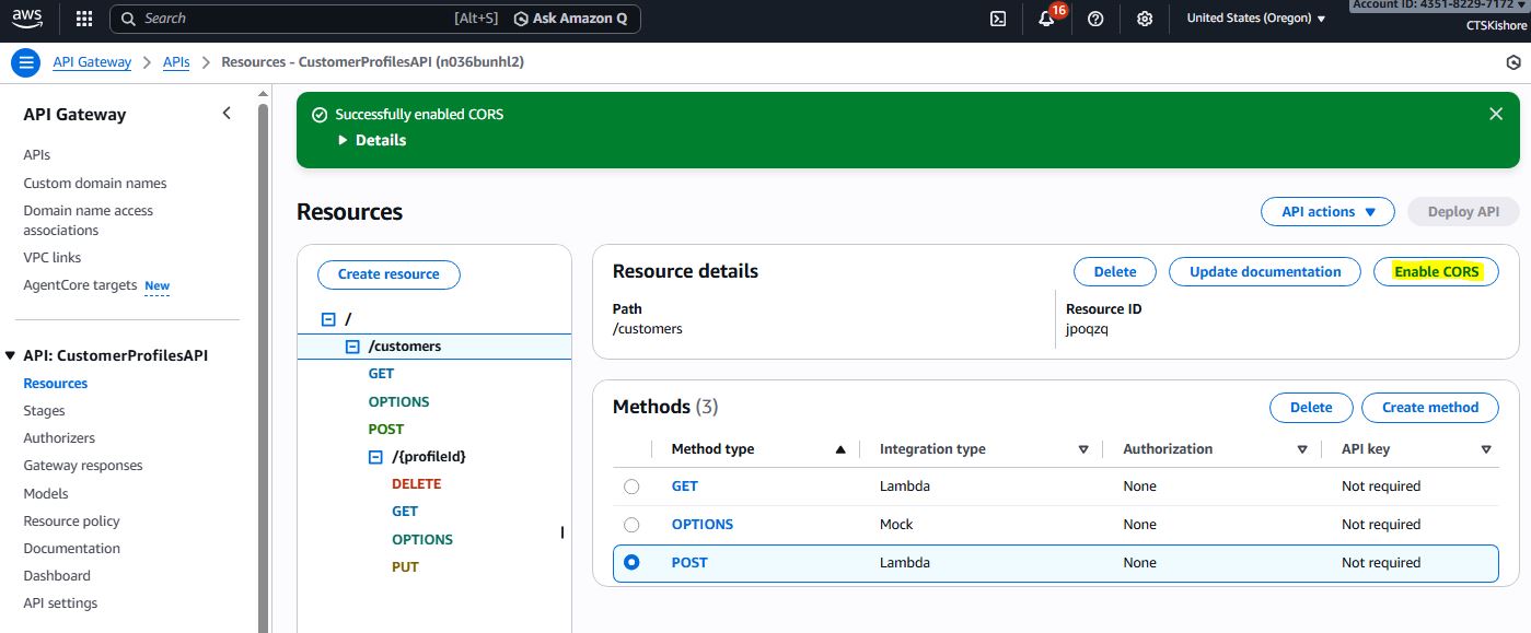 Unified Lambda function for all CRUD operations on Customer Profiles