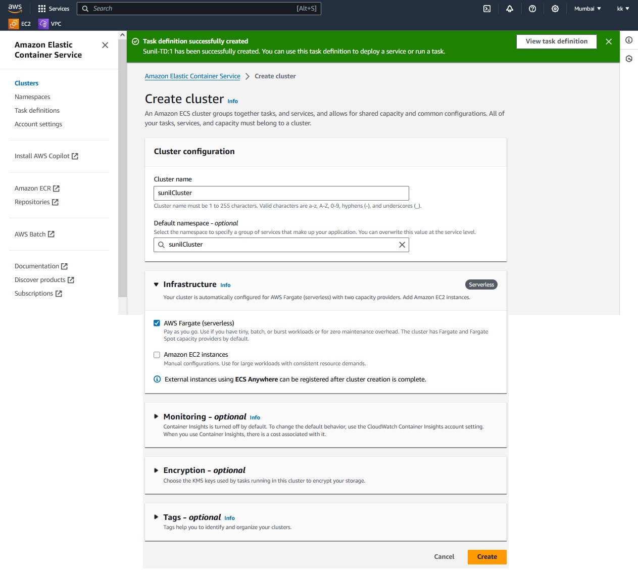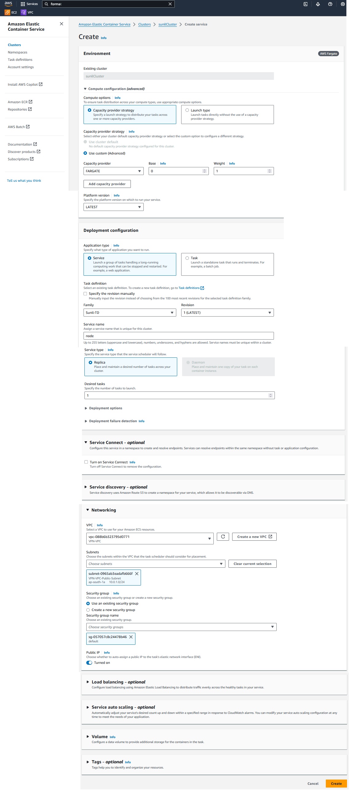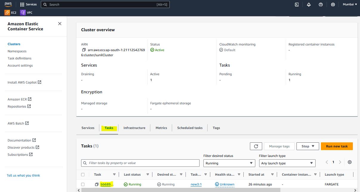 Commands used in this Docker - AWS ECR ECS Fargate