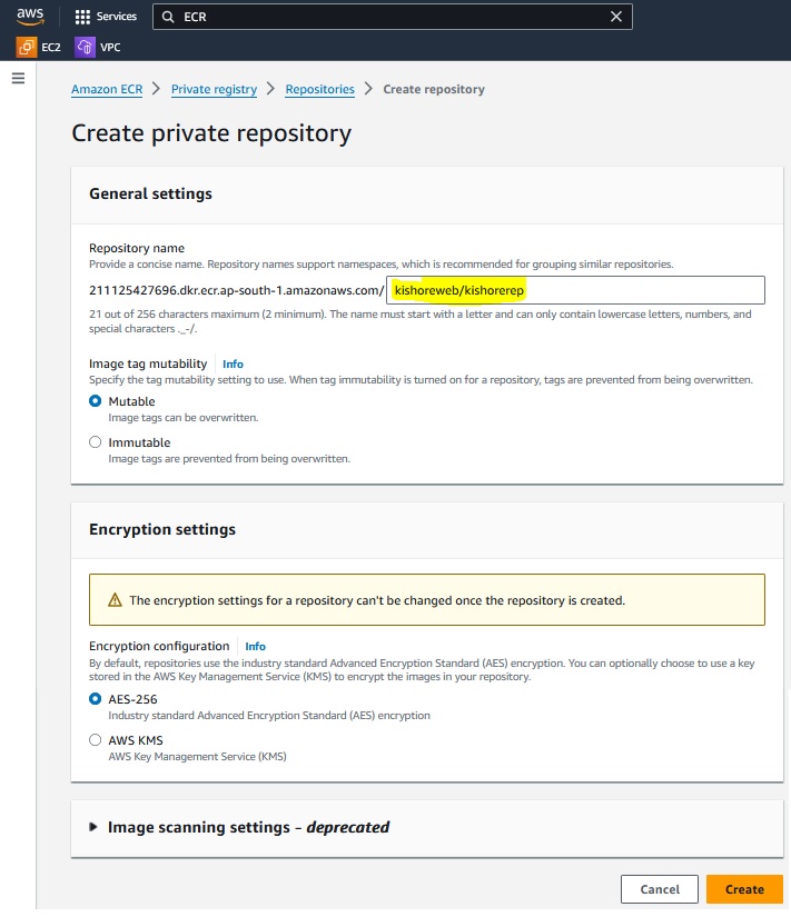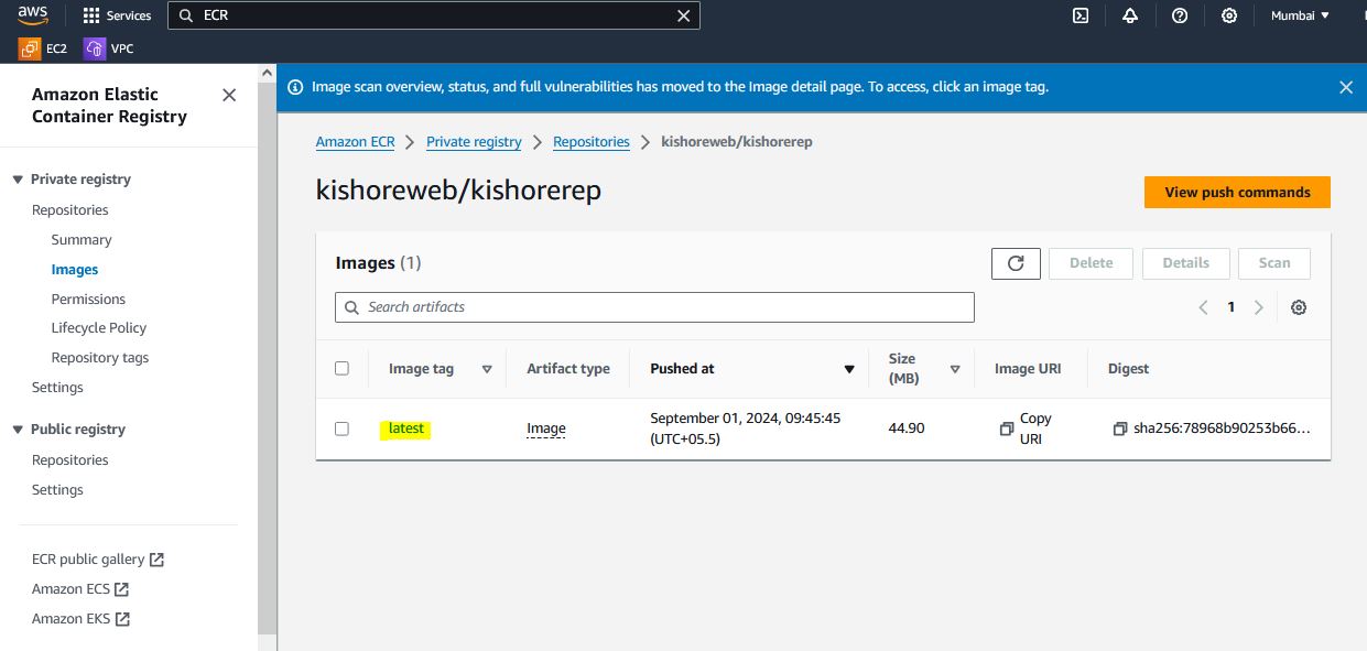 sudo docker push 211125427696.dkr.ecr.ap-south-1.amazonaws.com/kishoreweb/kishorerep:latest