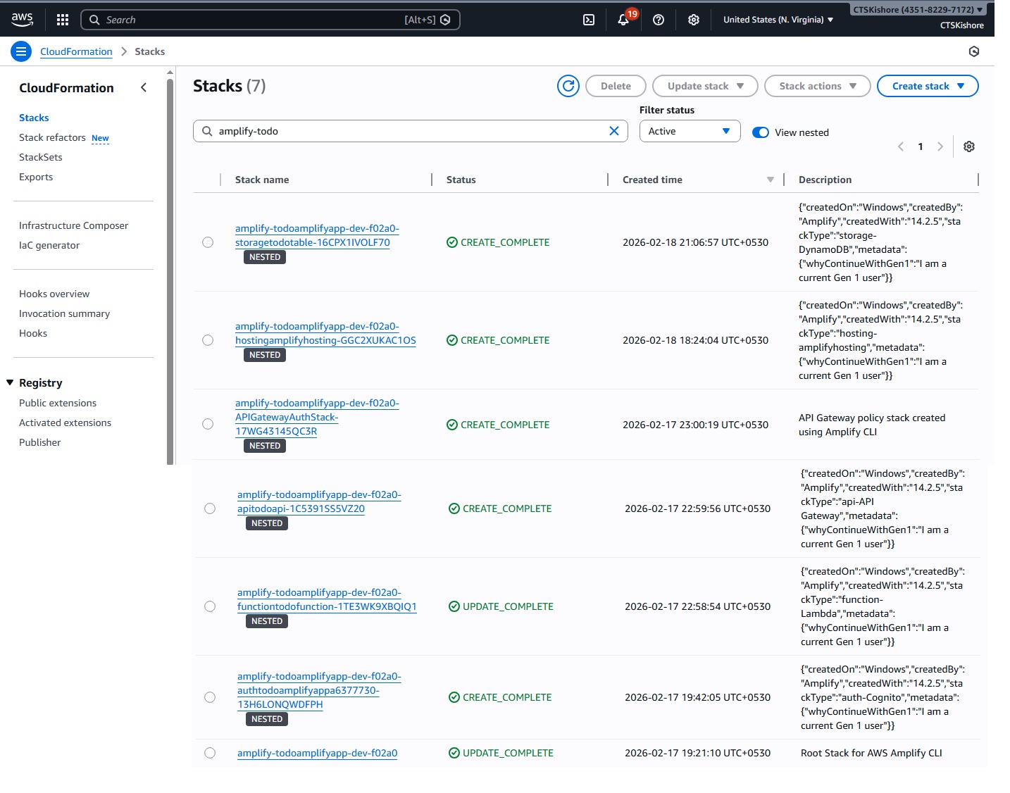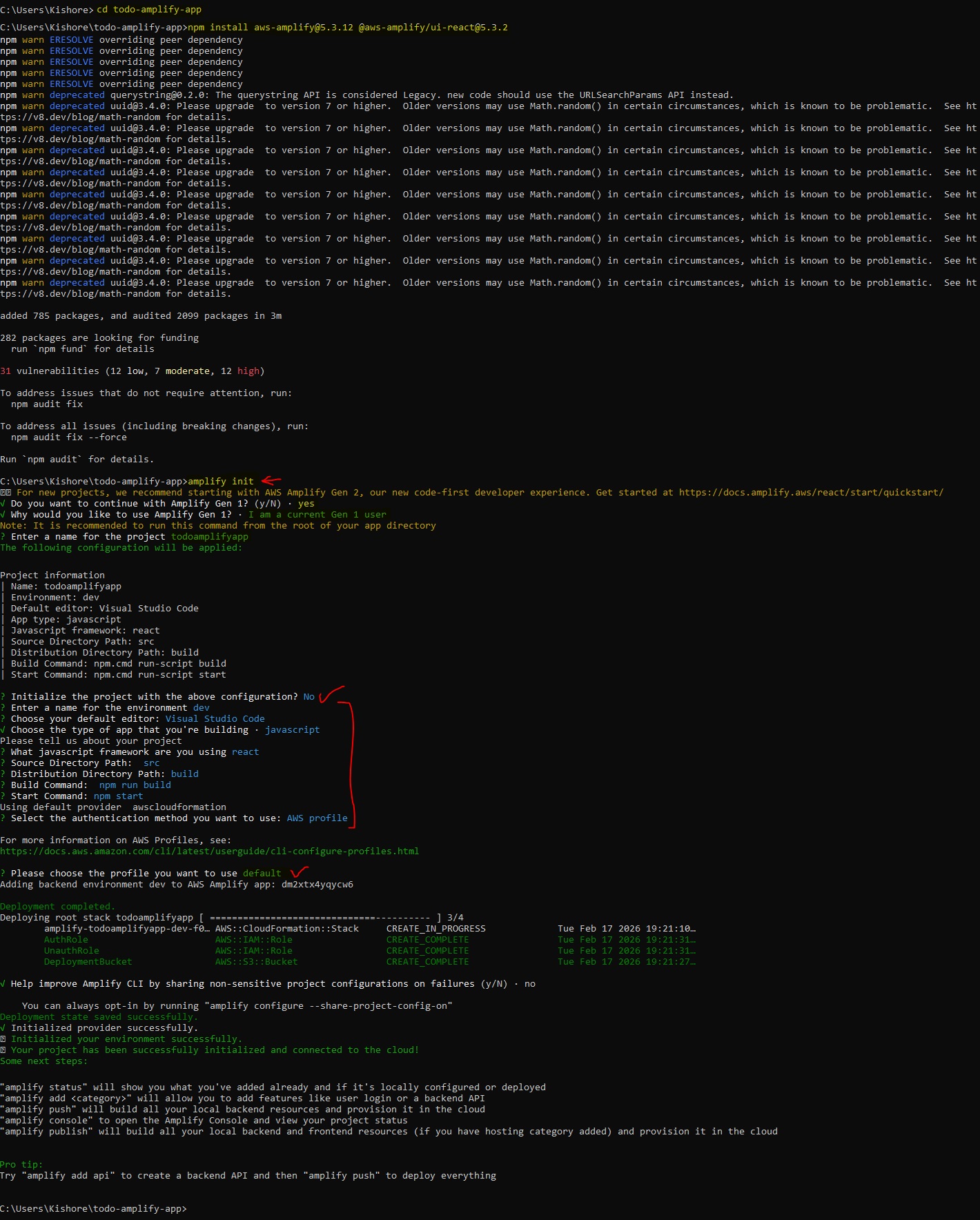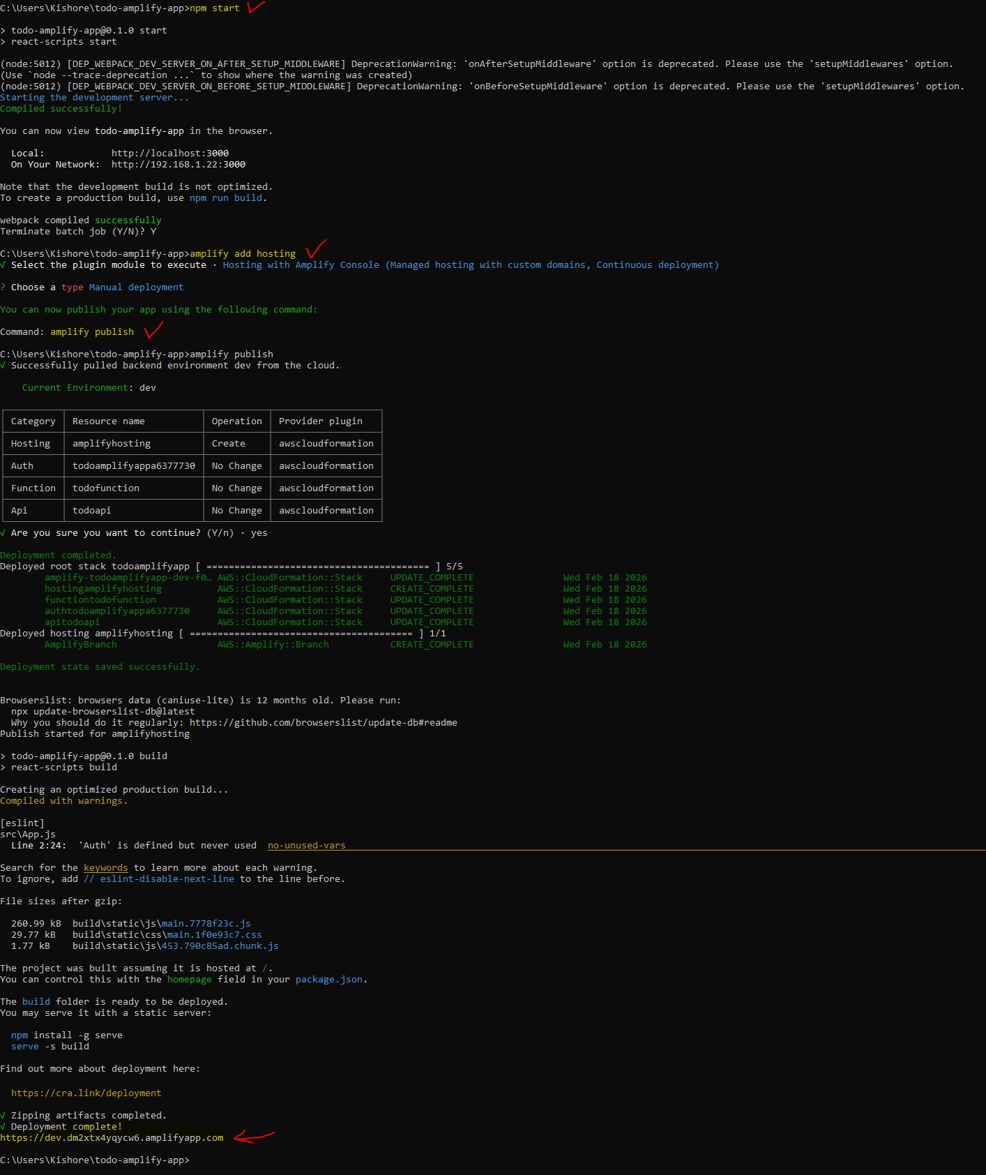 Amplify v5 → v6 Lambda Node 16 → 20 Lambda AWS SDK v2 → v3 Amplify Libraries v5 → v6 React Code v5 → v6 CLI Commandsnode --version aws --version aws configure npm install -g @aws-amplify/cli amplify configure # Create React app npx create-react-app todo-amplify-app cd todo-amplify-app # Install OLD Amplify version (v5) - we'll upgrade later npm install aws-amplify@5.3.12 @aws-amplify/ui-react@5.3.2 # Initialize Amplify project amplify init -- Add Authentication # Add Cognito authentication amplify add auth amplify push # Add REST API with Lambda amplify add api amplify push -- Add DynamoDB Storage # Add DynamoDB table amplify add storage amplify pushsrc/App.css:
