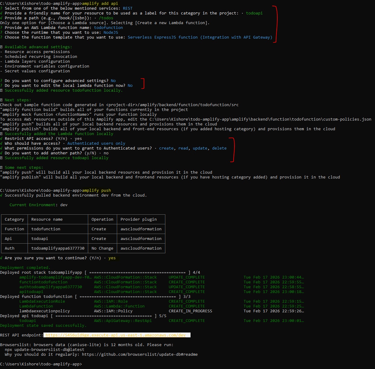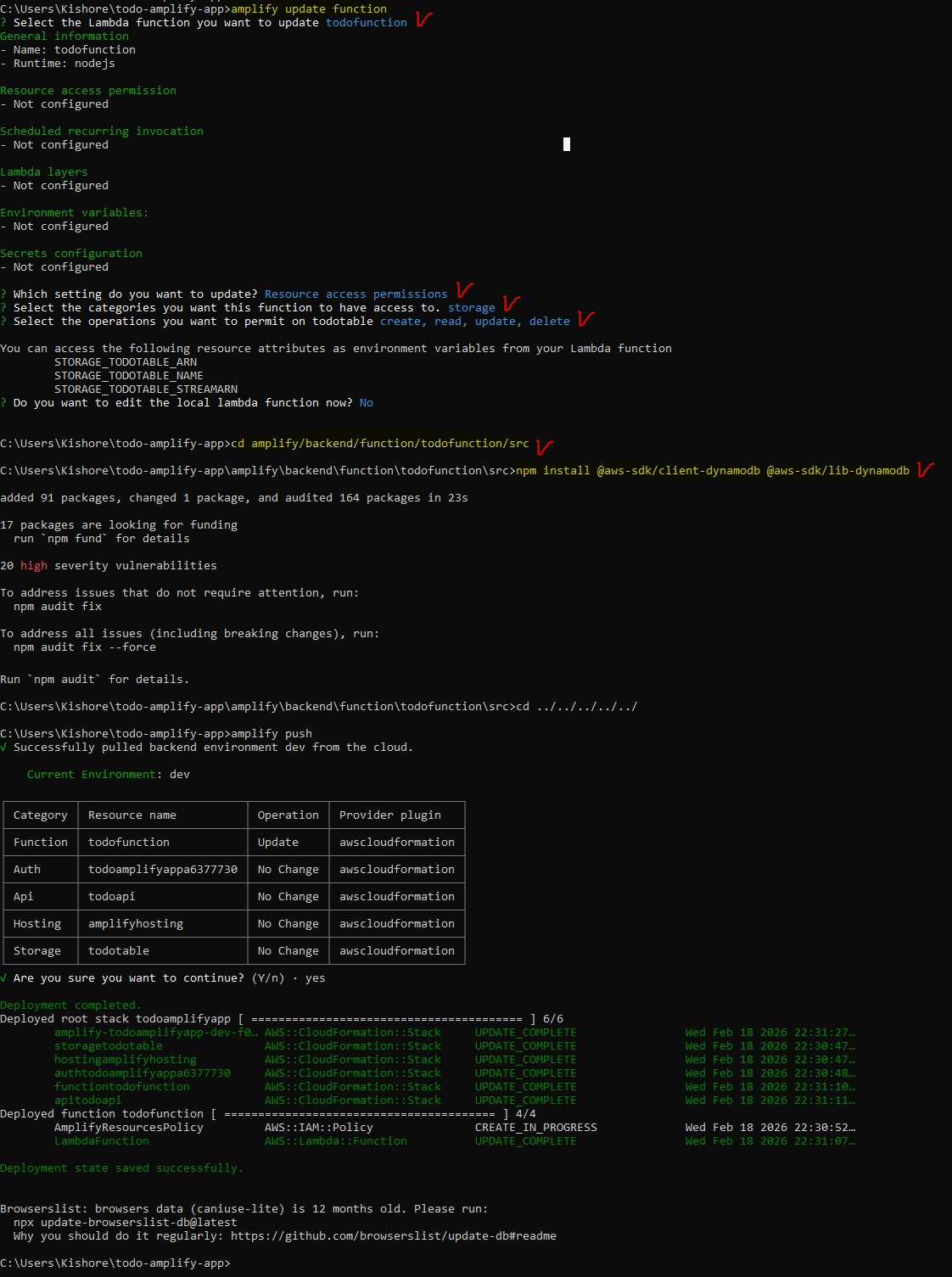 cd amplify/backend/function/todofunction/src npm install @aws-sdk/client-dynamodb @aws-sdk/lib-dynamodb cd ../../../../../amplify/backend/function/todofunction/src/app.js