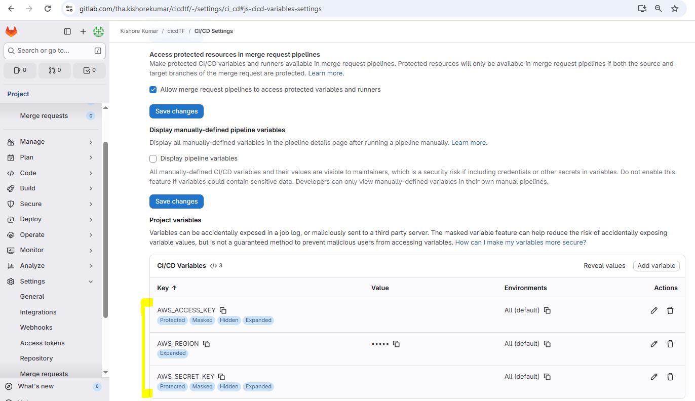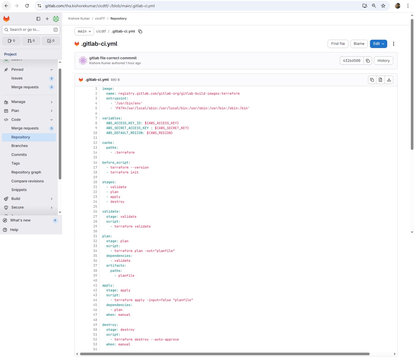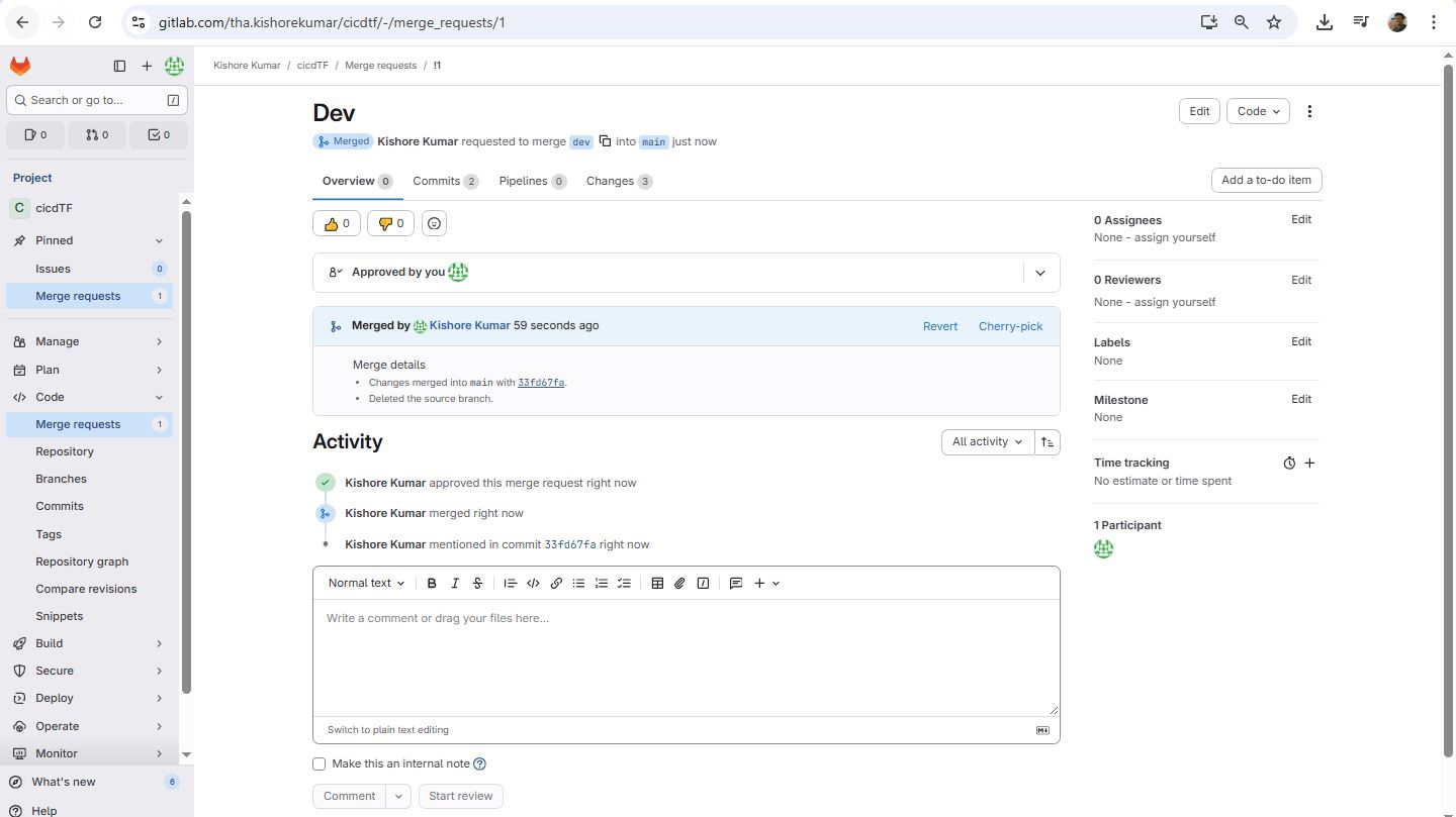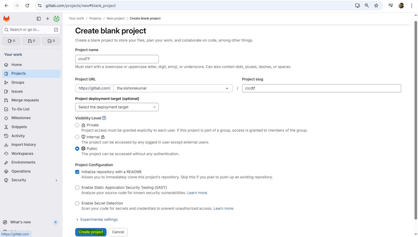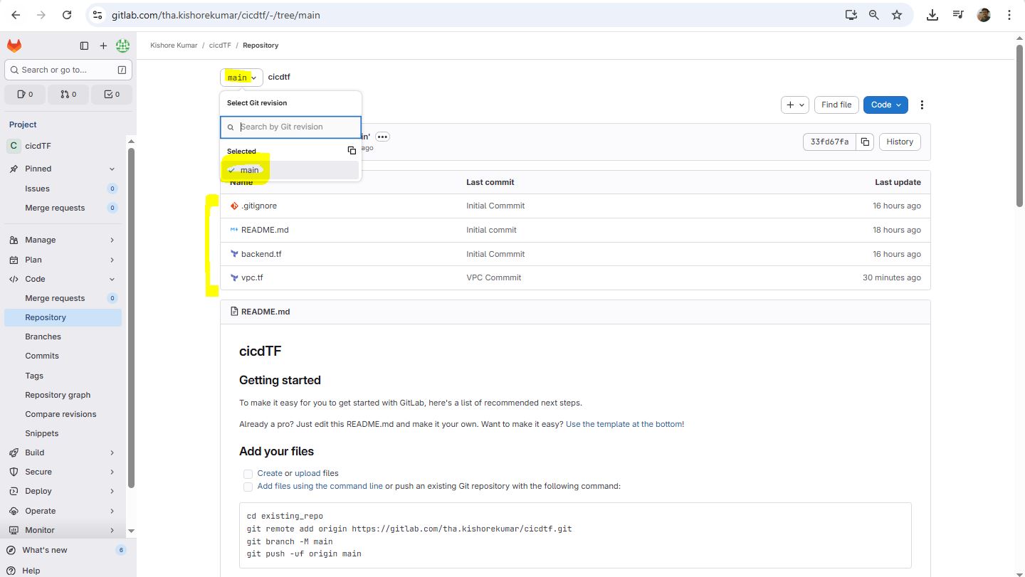 git init git remote add origin https://gitlab.com/tha.kishorekumar/cicdtf.git git remote -v git remote set-url origin https://gitlab.com/tha.kishorekumar/cicdtf.git git add . git config --global user.name "Kishore Kumar" git config --global user.email "kishore@kishoreweb.com" git config --global --list git commit -m "Initial Commmit" git push -u origin dev.gitlab-ci.yml