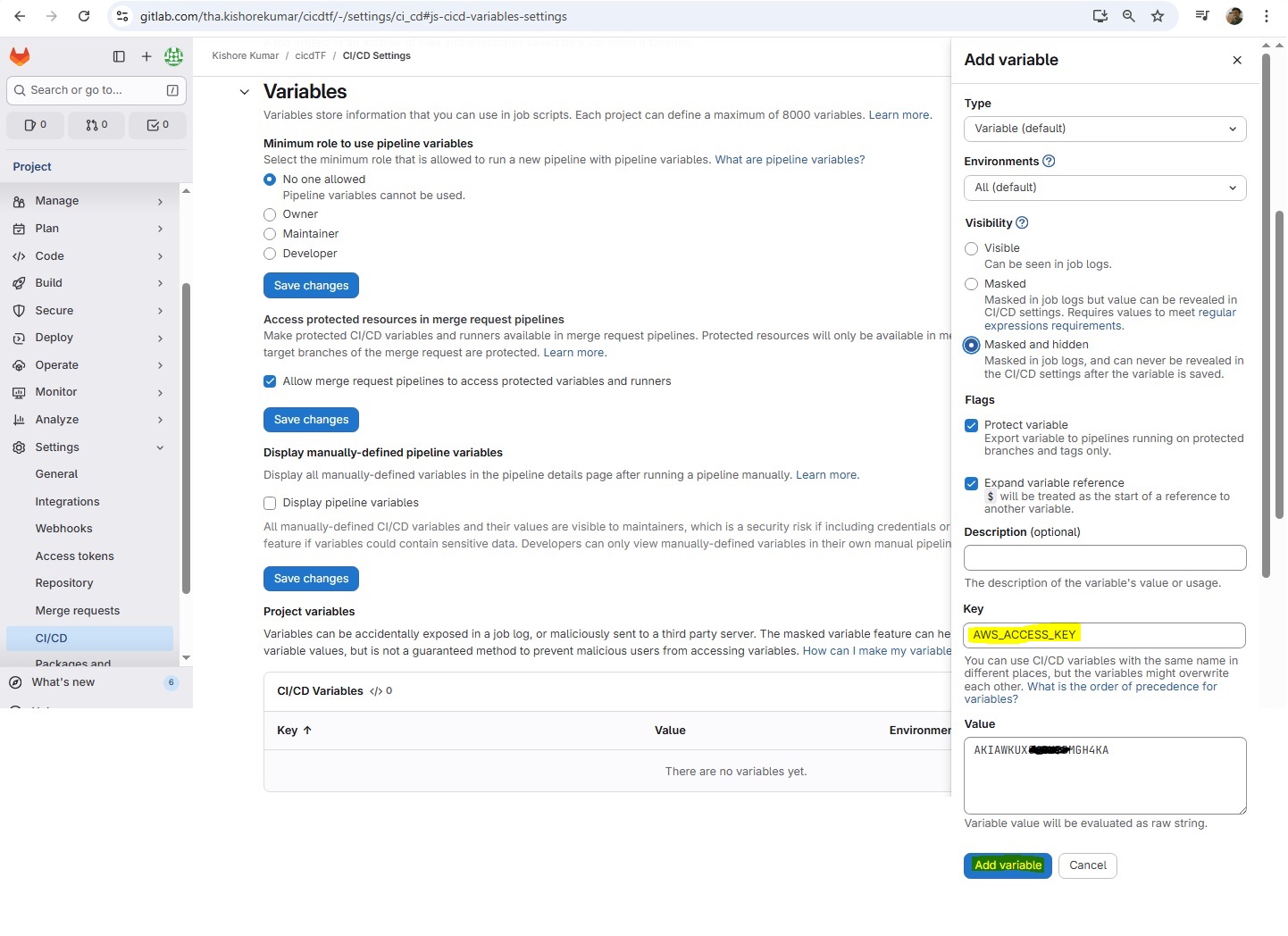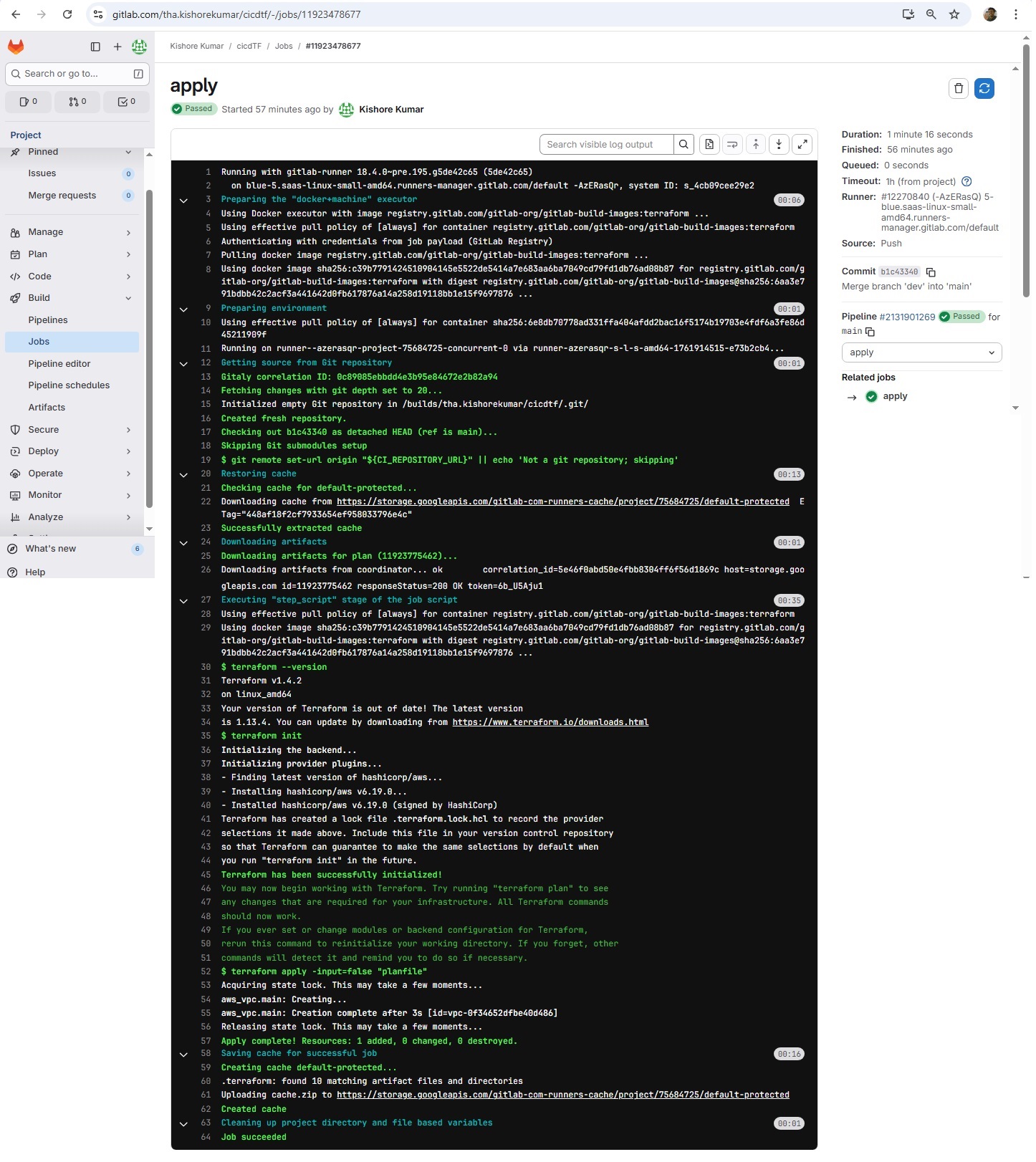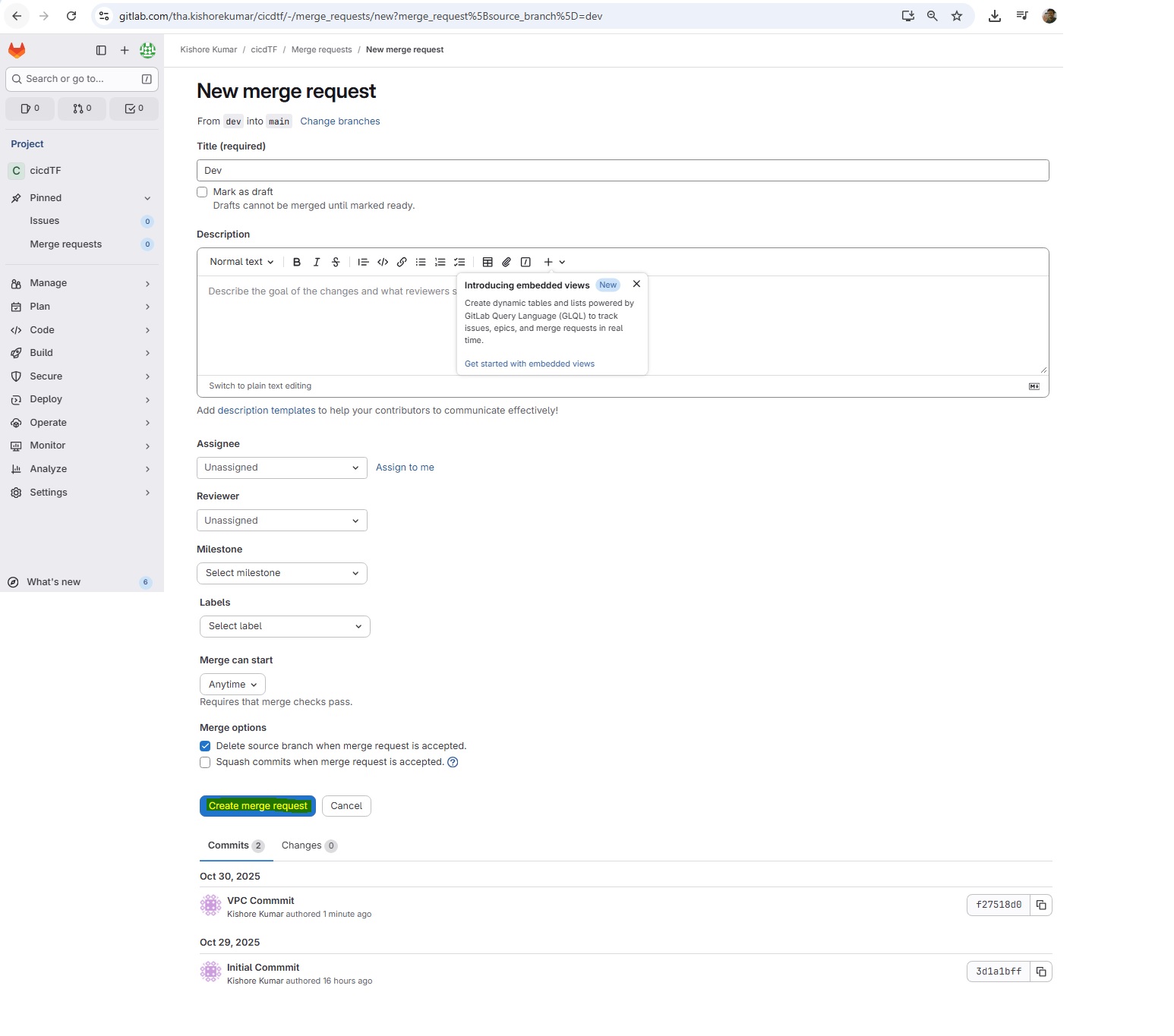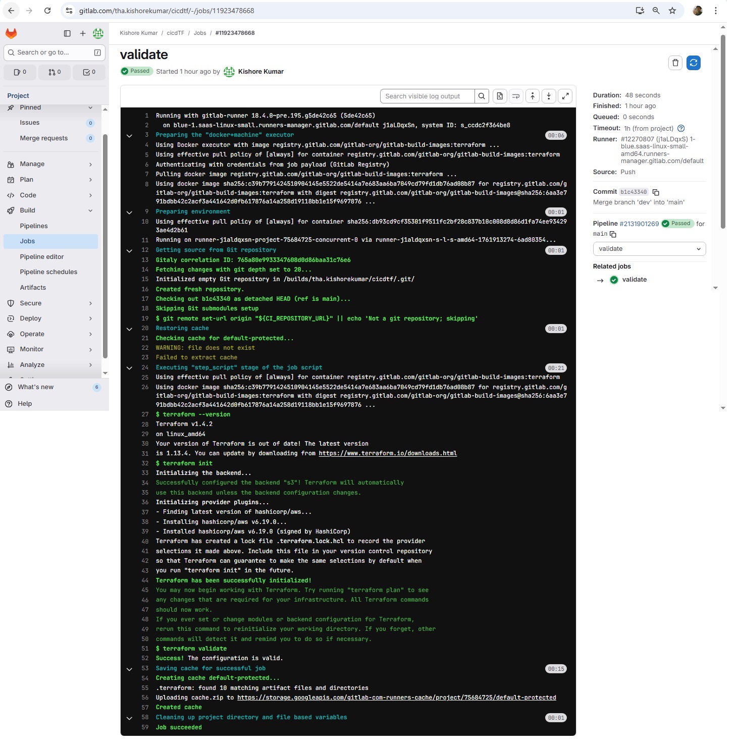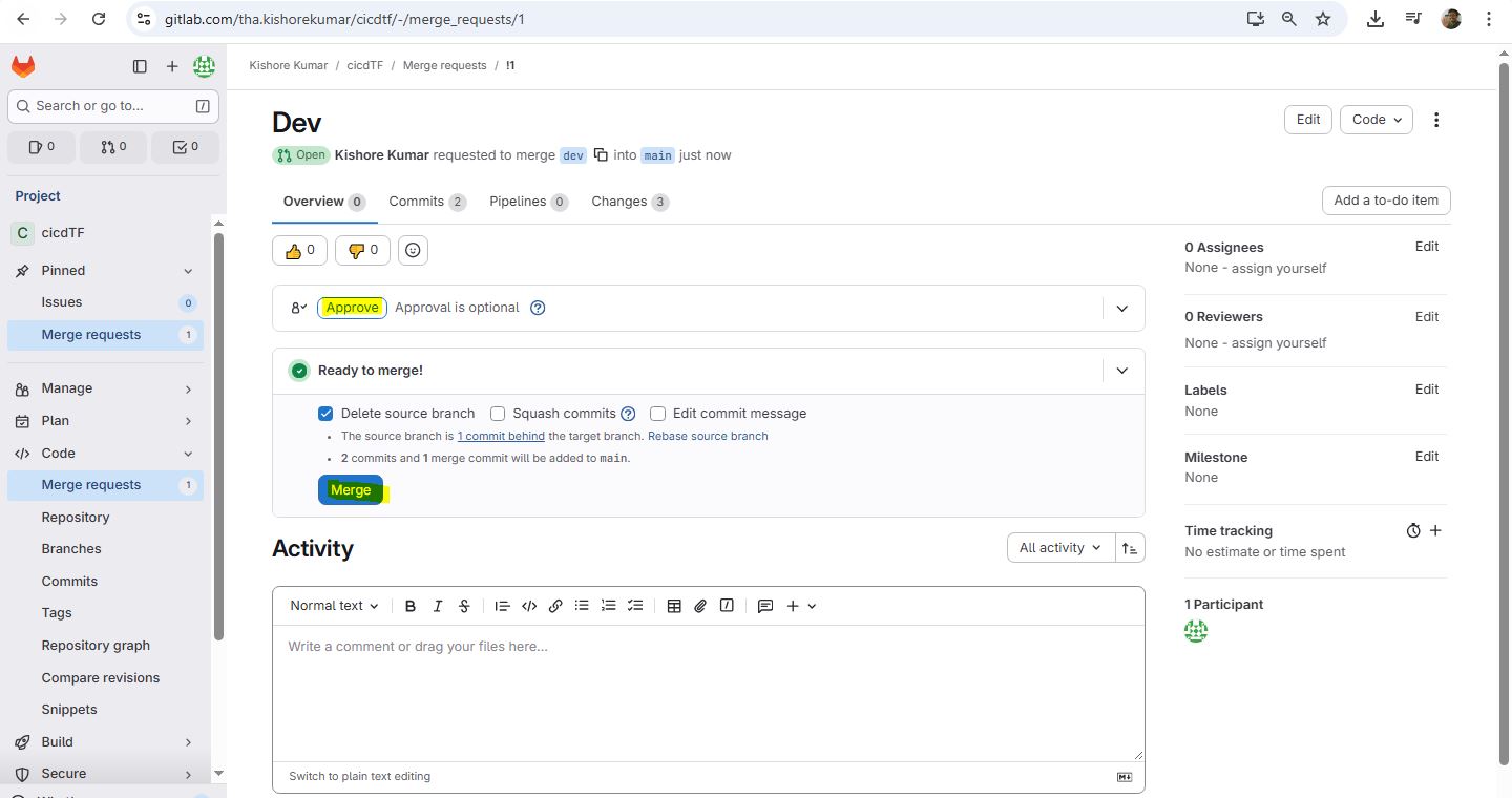 git init git remote add origin https://gitlab.com/tha.kishorekumar/cicdtf.git git remote -v git remote set-url origin https://gitlab.com/tha.kishorekumar/cicdtf.git git add . git config --global user.name "Kishore Kumar" git config --global user.email "kishore@kishoreweb.com" git config --global --list git commit -m "Initial Commmit" git push -u origin dev.gitlab-ci.yml