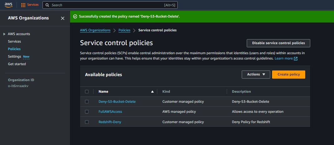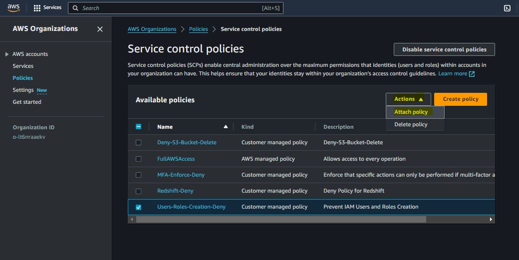 AWS Organization & Service Control Policies (SCPs)