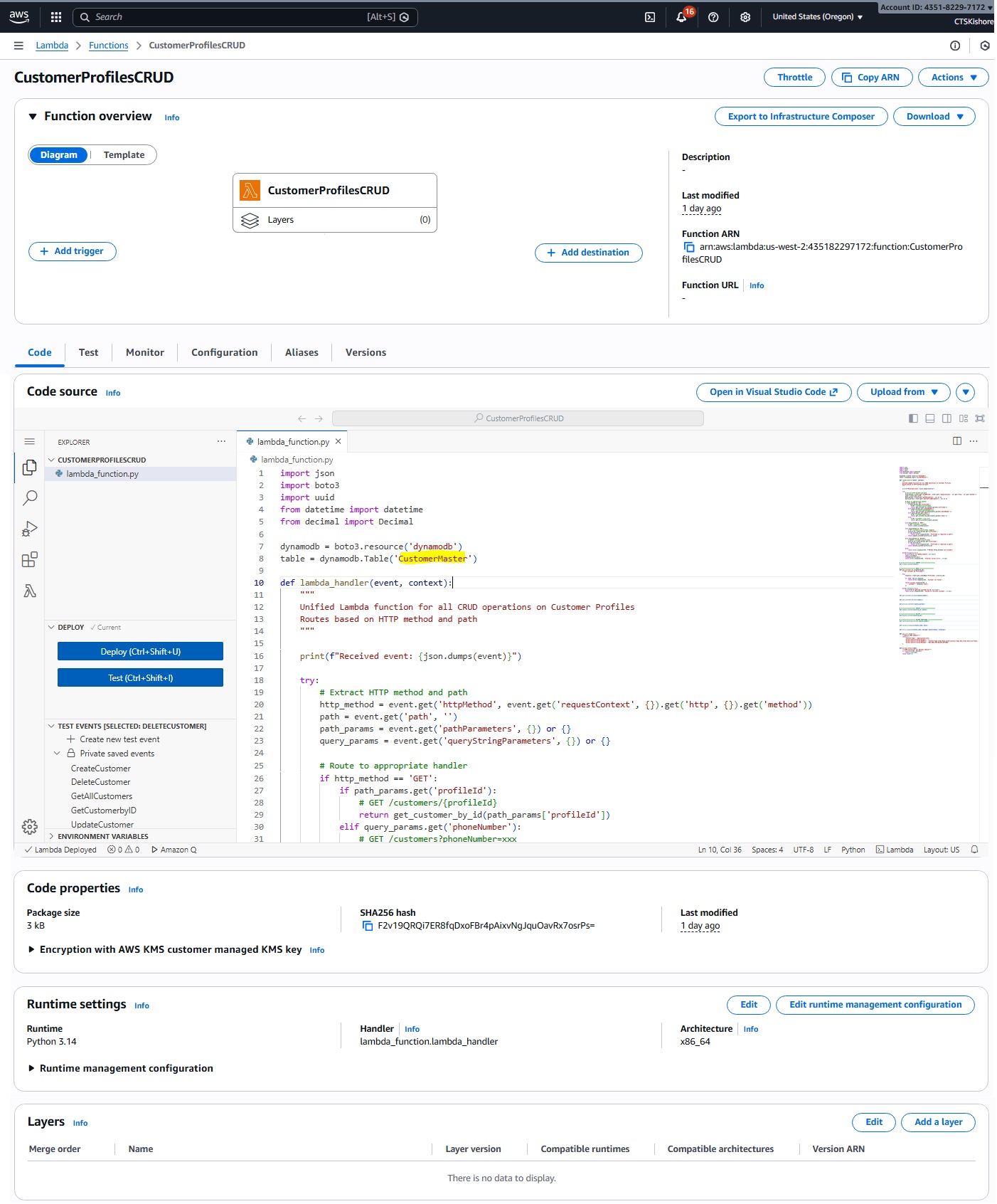 Lambda Code - CustomerProfilesCRUD
