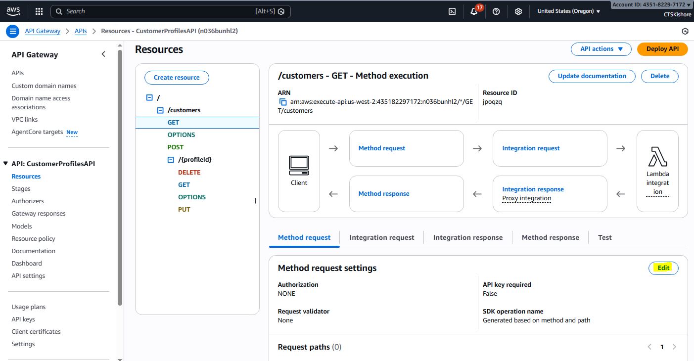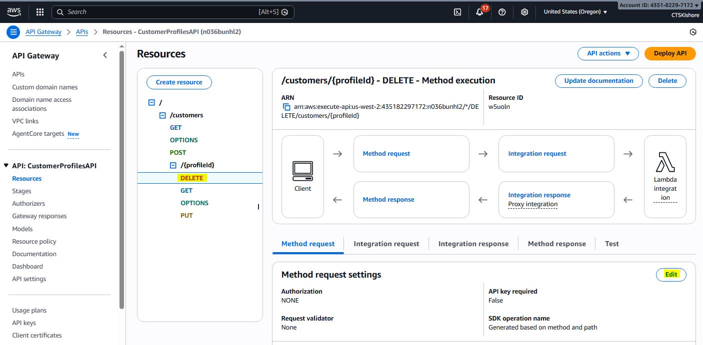 Unified Lambda function for all CRUD operations on Customer Profiles