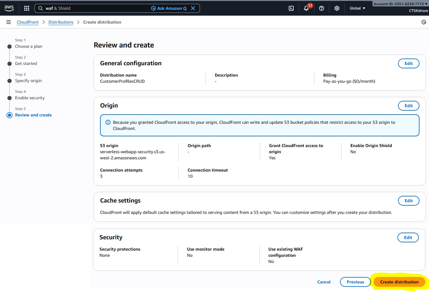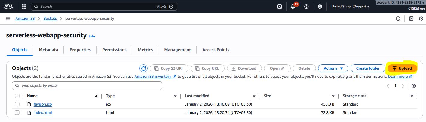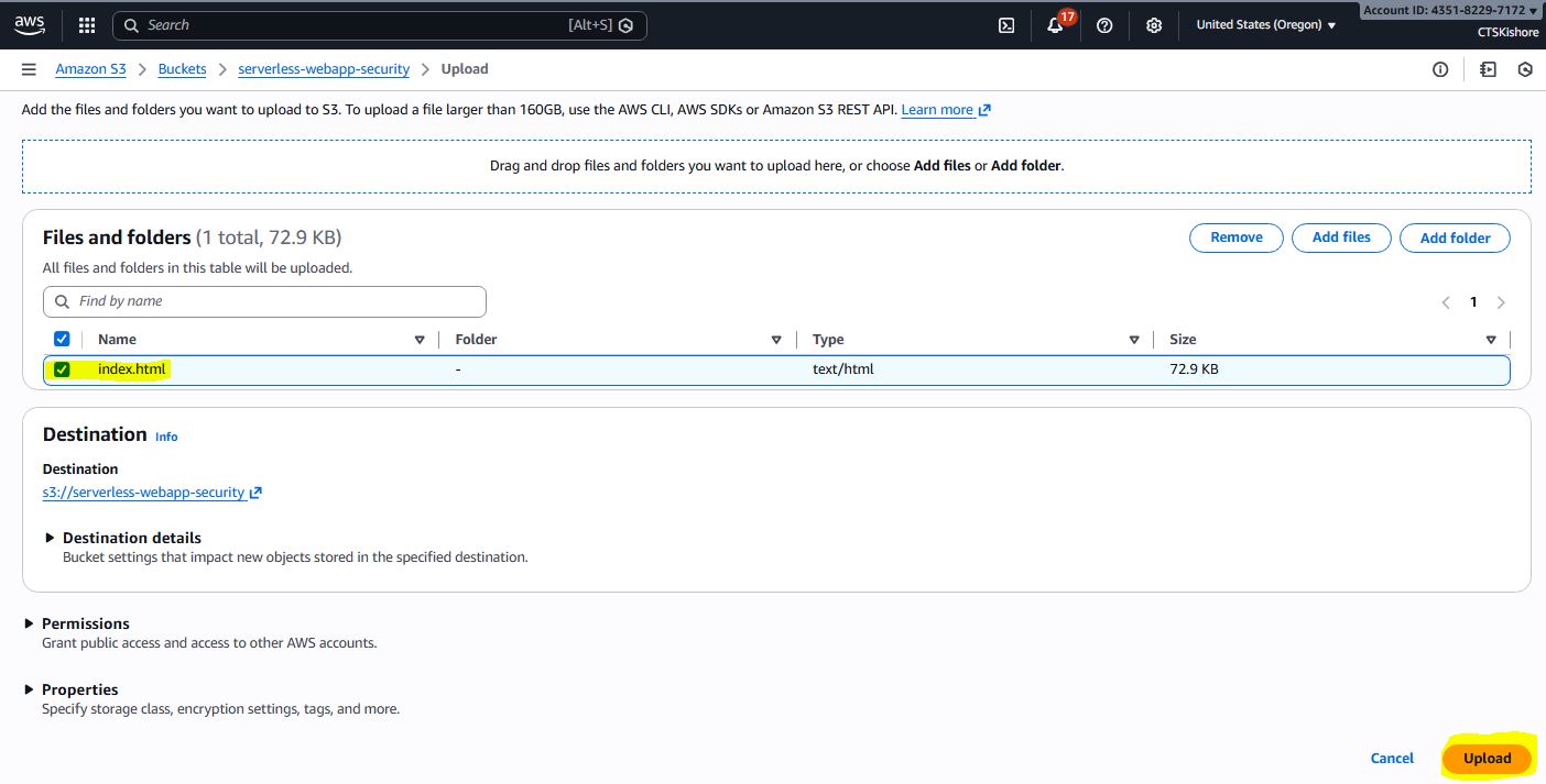 Serverless Webapp with Security Deployment Steps & Images