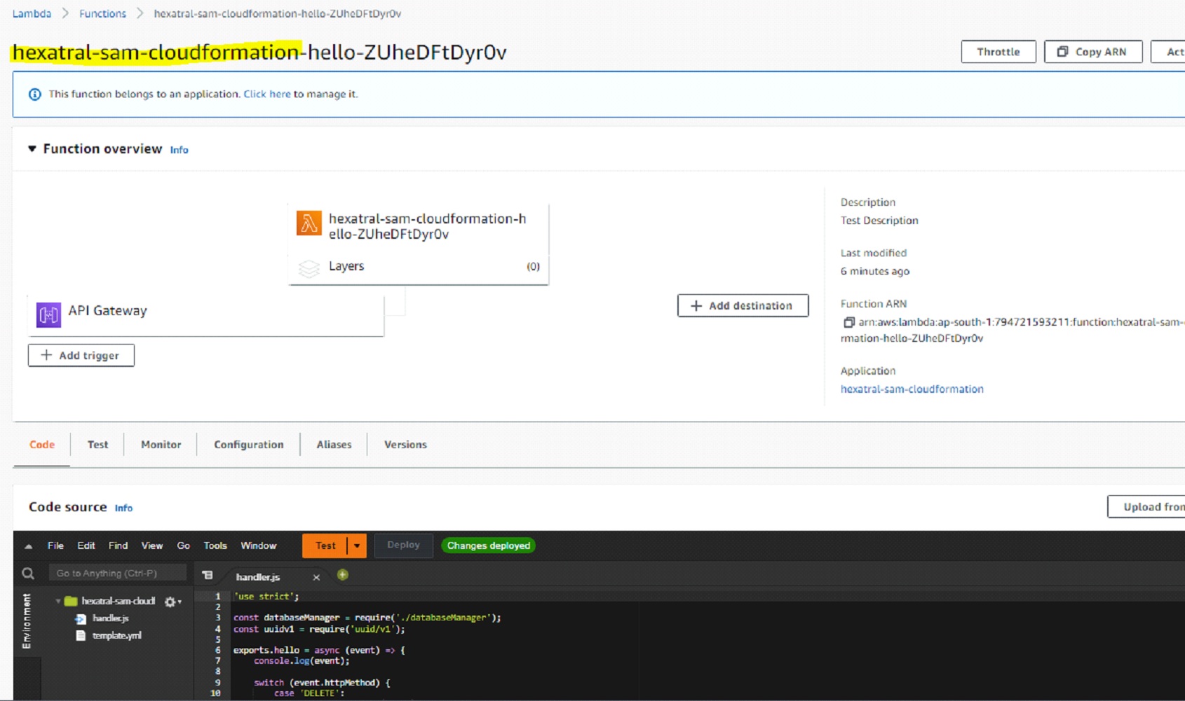 aws cloudformation deploy --template-file e:\Hexatral\SAM\packaged-template.yaml --stack-name hexatral-sam-cloudformation --capabilities CAPABILITY_IAM