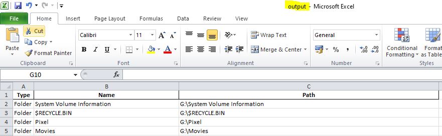 Successfully extracted folder and file names to 'C:\Users\Kishore\Desktop\New\output.xlsx'.